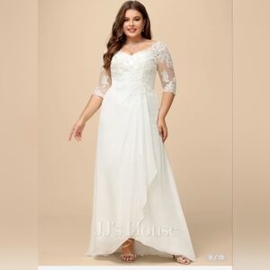 NEW! Size 24W A-line V-Neck Asymmetrical Lace Chiffon Wedding Dress 👰