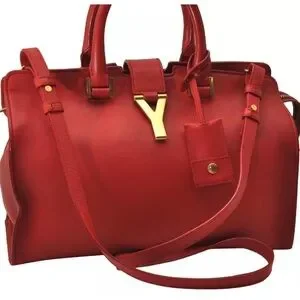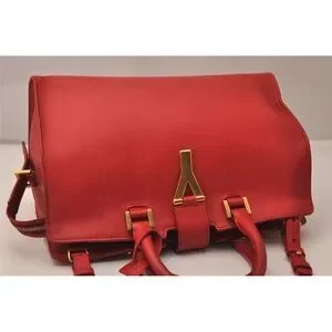 YVES SAINT LAURENT Cabas 2Way Shoulder Tote Bag Leather Red