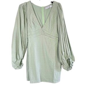 Petal And Pup Sage Green Emilina Long Sleeve V Neck Mini Dress Size Small
