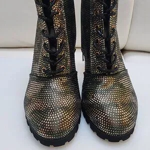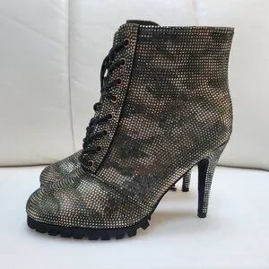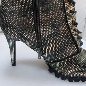 GLAM CAMO Crystal Studded Lug Sole Combat Stiletto Heel Boots - Size 10 LIKE NEW
