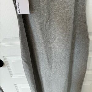 Chic gray midi dress by Reformation. Sleeveless design with a fitted silhouette. Perfect for versatile styling.