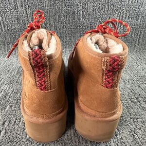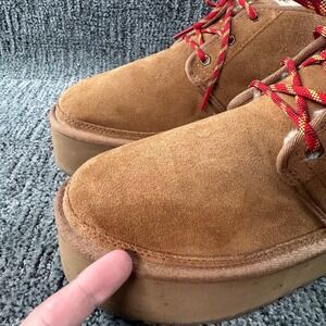 UGG Neumel Platform Booties Womans Size 9 Chestnut Suede Fur Lined Lace Up