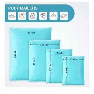 Brand new! Variety Size 40 Pack Teal Poly Mailers, 10”x13” & 12”x15.5” & 14.5”x19”& 19”x24”, 10pcs each Perfect for shipping needs.