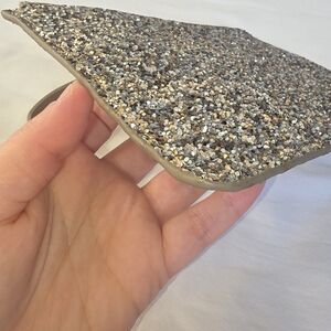 Elevate your style with this sparkling silver wristlet clutch. Perfect for any glamorous occasion.