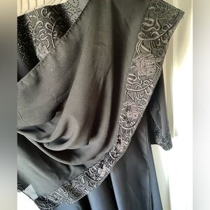 Black Abaya Thobe Embellished Modest Prayer Dress with Head Scarf - size L
