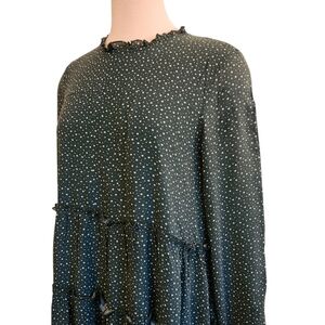 ANTHROPOLOGIE MAEVE ESTHER TIERED TUNIC/DRESS GREEN/WHITE POLKA DOT SIZE MEDIUM