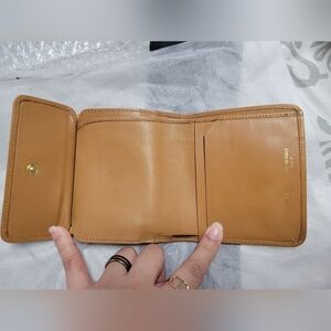 In good condition. Very cute wallet for everyday use. Interior is clean. Signs of usage.