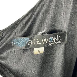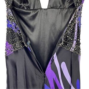 SUE WONG Y2K SILK PLUNGE HALTER STUDDED FLORAL SEXY CUTOUT FORMAL GOWN DRESS