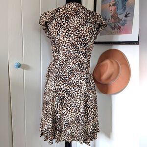 Free People Tie-Waist Wrap Dress S Coquette Girl Mobwife Boho Chic Animal Print
