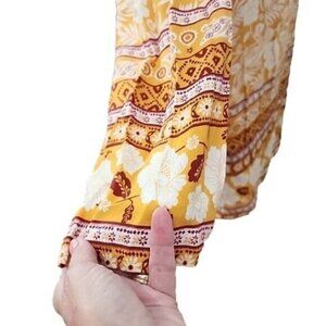 Emery Rose Floral 3/4 Sleeve W/ Birds Boho Top. Gold And Cream. Medium