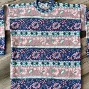 Keywords: vintage - 1980s - 80s - retro - pullover - sweater - drop shoulder - crewneck - fair isle - pastel - cutesy - kawaii - pastel goth - cardigancore - grandmacore - cottagecore - acrylic - winter