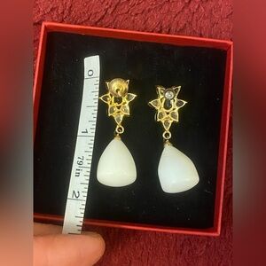 These stunning gold and blue drop earrings add a touch of elegance to any outfit. Perfect for special occasions or everyday wear.