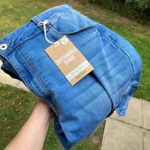 Comfort jeans skinny jeans stretchy intentional distressing cargo denim cargo pockets trendy trending trend trends summer trend fall trend fall winter spring summer versatile Whiskering casual jeans sustainable jeans, recycled materials summer jeans