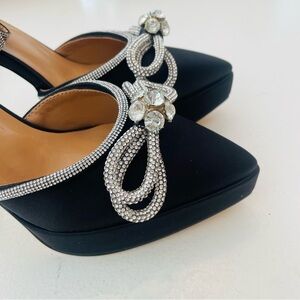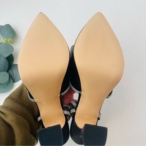 Ankle strap heels decorated with shiny rhinestone bow, pointed toe strappy pumps a sophisticated flair to your prom outfit.