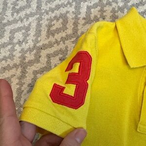 Vibrant yellow polo with bold red logo. Stylish and comfortable for kids. Classic design! Excellent condition. Worn and washed once or twice.