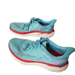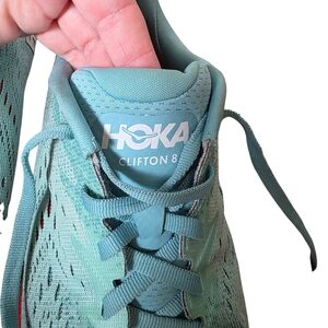 Hoka One One Clifton 8 Running Shoes 9.5 Teal Mesh Cushion Performance Athletic