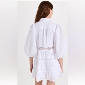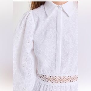 unexpected silhouette that's destined to be your new favorite dress. Blakesley includes blouson puffed sleeves, eyelet details, collared construction and mini length. A little white dress is just as important as an LBD and we believe you can never have too many of those.