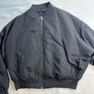 Alo Yoga It Girl Bomber Jacket Black Size Medium EUC Oversize Blade Collar