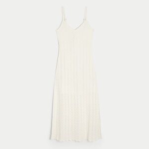 This pretty midi-length dress is made with super soft crochet-style fabric and features all-over stitched patterns. Split hem detail, adjustable straps.