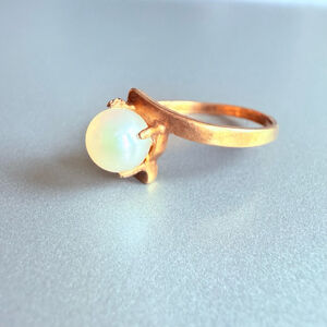 14k Gold Weinman Bros Solitaire Natural Salt Water Pearl Mid Century Ring VINTGE
