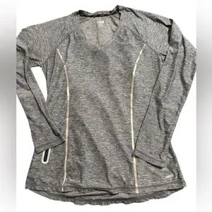 Blue long sleeve tee by Avia. Features a sleek design. Ideal for workouts or casual wear.