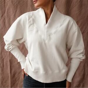 Agolde Klara Off White V-neck Sweatshirt Exaggerated Ribbed Cuffs L
