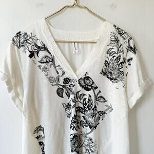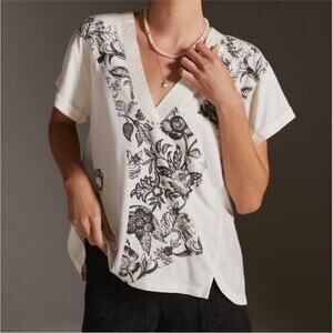 Anthropologie Daily Practice Black Floral Print Oversized V-Neck T-Shirt