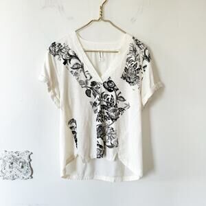 Anthropologie Daily Practice Black Floral Print Oversized V-Neck T-Shirt XXS
