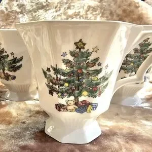 Celebrate the holidays with this charming Vintage Nikko Christmastime Mug Set. Perfect for festive gatherings, these white mugs feature a delightful holiday design. Ideal for enjoying your favorite hot beverages.