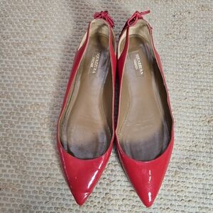 Aquazzura Forever Marilyn Tassel Flats Red Patent Leather Size 38 (8) Made Italy