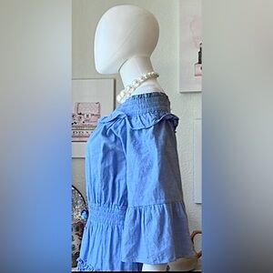 Miso Los Angeles 100% Cotton chambray ruffle tiered dress blue color Size