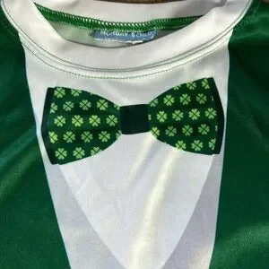 Adorable! Lucky Irish Leprechaun St Patrick’s Day Costume long sleeve soft Dri fit tee shirt! This adorable sharp looks like a leprechaun green jacket, suit vest and bowtie accented with shamrocks! Super cute for a celebration, party or parade! Size small youth