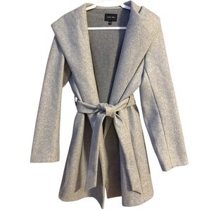 Love Tree Gray Hooded Belted Wrap Coat Minimalist Longline Jacket Size L