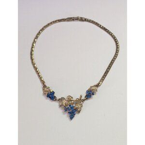 Vintage Silver Tone Necklace Blue Rhinestone Grape Cluster Design 16 Inches Long