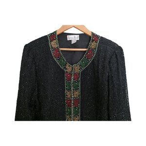 Vintage Women's - Laurence Kazar Beaded Bow Holiday Jacket, Size 1X