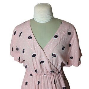 This is a surplice wrap front mini dress made from pink floral print crepe fabric by & Other Stories.