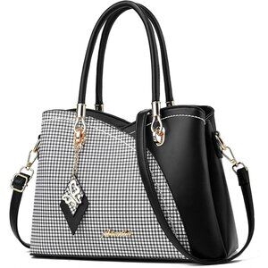 Women’s Tp Gz Balck PU Leather Tote Satchel | Crossbody Shoulder Handbag
