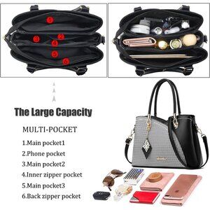 Multi Pockets: 3 Main Compartments with 1 Interior Zippered Pockets and 2 Open Pockets, 1 Exterior Back Pocket.The Satchel Handbag for Women Effortlessly Accommodates Your Daily Essentials— IPad Mini, Phone, Wallet ,Cosmetic and Other Daily Stuffs.