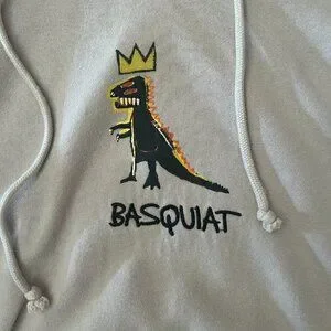 Jean Michel Basquiat Mens XL Sweatshirt Dinosaur Hoodie Streetwear Embroidered