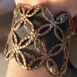 This vintage throwback bracelet features an intricate gold design on a black background, perfect for adding a touch of elegance to any outfit.