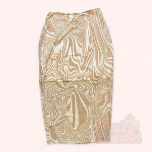 Ena Pelly Sand Funky Marble Print Midi Skirt NWT Sz 4 Neutral Swirl Sample Sale