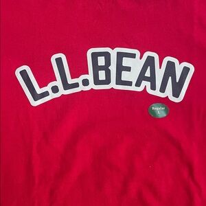 Bold red L.L. Bean shirt with long sleeves. Features prominent logo across the chest.