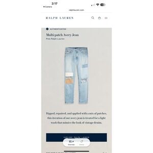 • POLO RALPH LAUREN The Avery Boyfriend Distressed Patchwork Jeans Women's Size 34 - New With Tags NWT