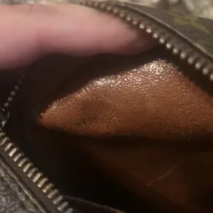 The bag is approximately 11” wide x 8” high x 4 1/2” deep. It is in pre-loved vintage condition with an adjustable cross body strap. This is not new, and there is some wear to the corners, but there is no exposed piping. The leather is durable.