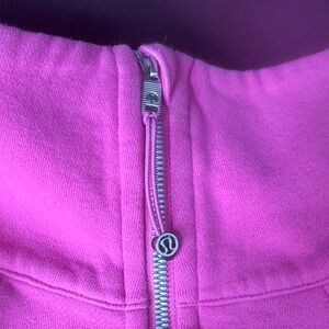 Bright pink quarter-zip pullover. Cozy and stylish.