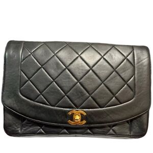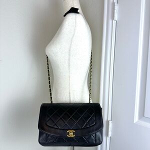 CHANEL DIANA 25 Single Flap Quilted Logo Lambskin Chain Bag