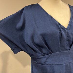 SHEIN Curve casual v-neck short sleeve Navy Blue a-line Dress
