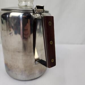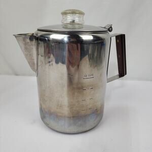 Stainless Steel 18/8 12-Cup Camping Coffee Percolator Non-Electric Wood Handle