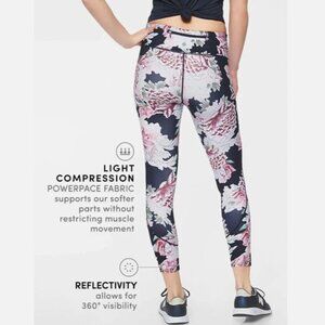 #1 Athleta Run Free Multi-Color Floral Garden Party 7/8 Tight - allover print, back center pocket, pocket on hip for phone, 75% polyester 25% lycra