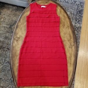 Calvin Klein Pleated Red Bodycon Dress Size Small